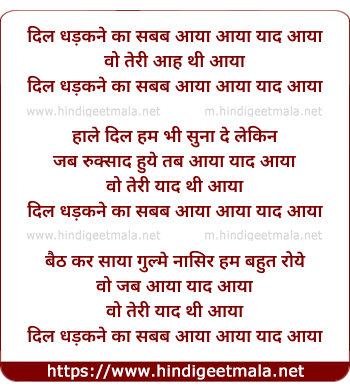 Poetic Translation - Lyrics of Dil Dhadakne Ka Sabab - दिल धड़कने का सबब आया आया याद आया
