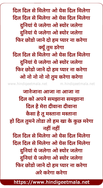 Lyrics of Dil Dil Se Milega - दिल दिल से मिलेगा