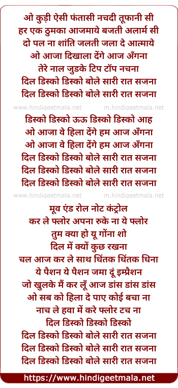 Lyrics of Dil Disco Disco Bole Saari Raat Sajna - दिल डिस्को डिस्को बोले सारी रात सजना