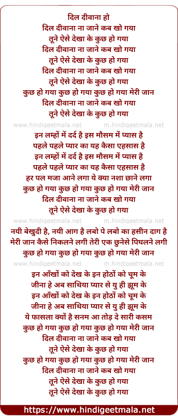 Lyrics of Dil Divana Naa Jane Kab Kho Gaya (Solo) - दिल दीवाना ना जाने कब खो गया