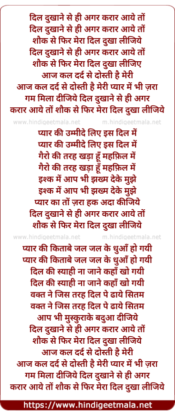 Lyrics of Dil Dukhane Se Hi Gar Qarar Aaye To - दिल दुखाने से ही अगर करार आये तों