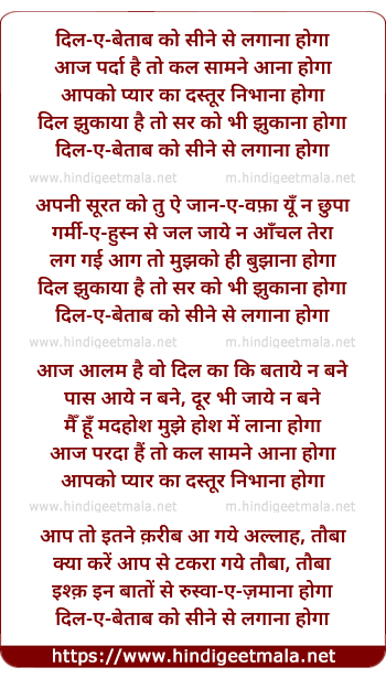 Lyrics of Dil-E-Betaab Ko Sine Se Lagana Hoga - दिल-ए-बेताब को सीने से लगाना होगा