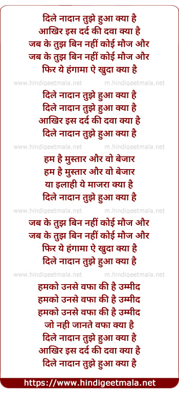 Lyrics of Dil- E -Nadan Tujhe Hua Kya Hain - दिले नादान तुझे हुआ क्या है