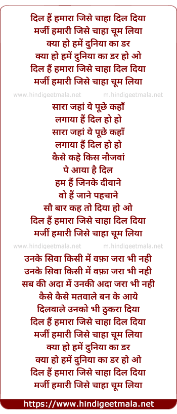 Lyrics of Dil Hai Hamara - दिल हैं हमारा