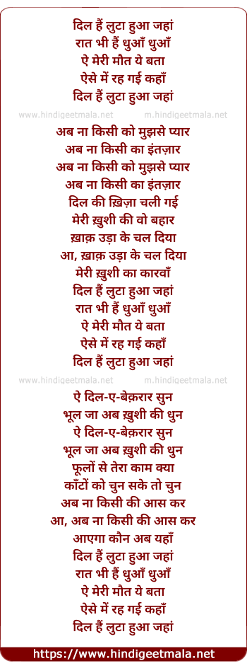 Lyrics of Dil Hai Loota Hua Jahan - दिल हैं लुटा हुआ जहां