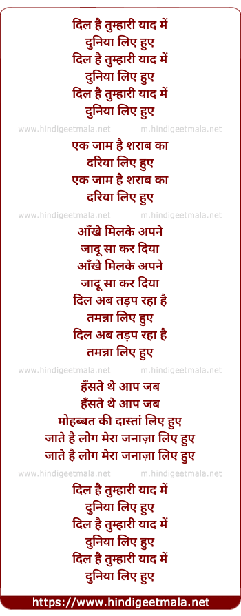 Lyrics of Dil Hai Tumharee Yad Kee Duniya Liye Huye - दिल है तुम्हारी याद की दुनिया लिए हुए