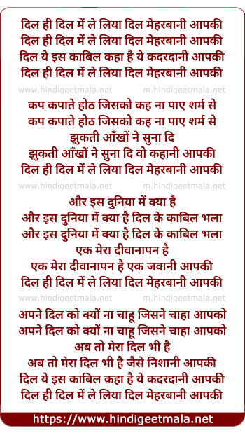 Lyrics of Dil Hi Dil Me Le Liya Dil Meharbani Aapki - दिल ही दिल में ले लिया दिल मेहरबानी आपकी