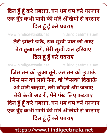 dil hum hum kare ghabraye, ghan dham dham kare garjaaye