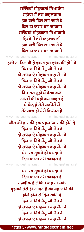 do lafze mohabbat keh lain de