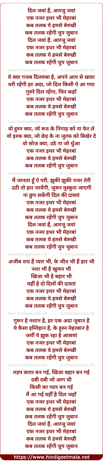 Lyrics of Dil Jawaan Hai Aarzu Jawaan (Duet) - दिल जवां हैं आरजू जवां
