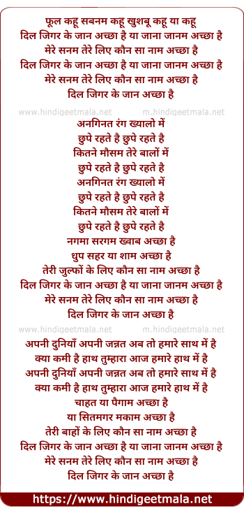 Lyrics of Dil Jigar Ke Jaan Achha Hai - दिल जिगर के जान अच्छा है