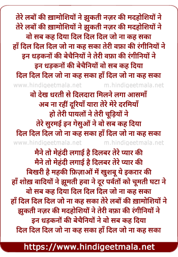 Lyrics of Dil Jo Na Kah Sakaa - दिल जो ना कह सका