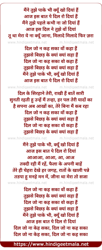 kyun kho diya hai,aaj is baat pe dil ro diya hellip;
