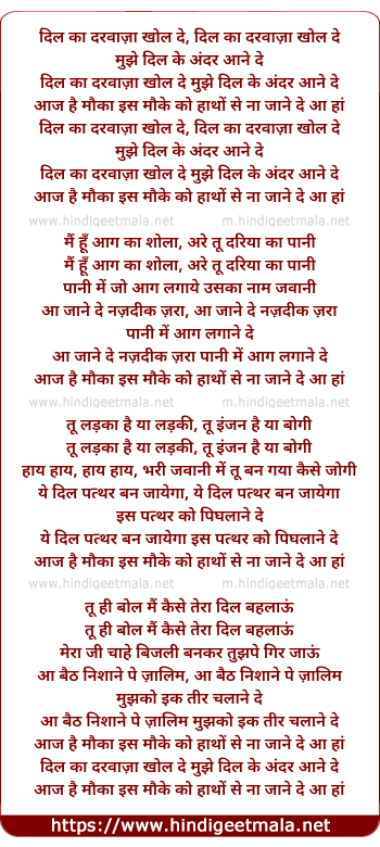 Lyrics of Dil Ka Darwajja Khol De - दिल का दरवाज़ा खोल दे