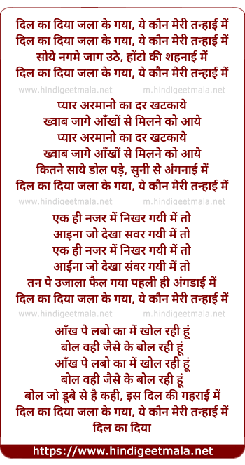 Lyrics of Dil Ka Diya Jala Ke Gaya - दिल का दिया जला के गया