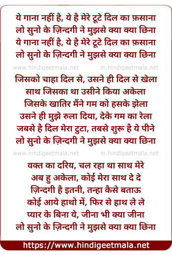 Lyrics of Dil Ka Fasana - ये गाना नहीं है, ये है मेरे टूटे दिल का फ़साना