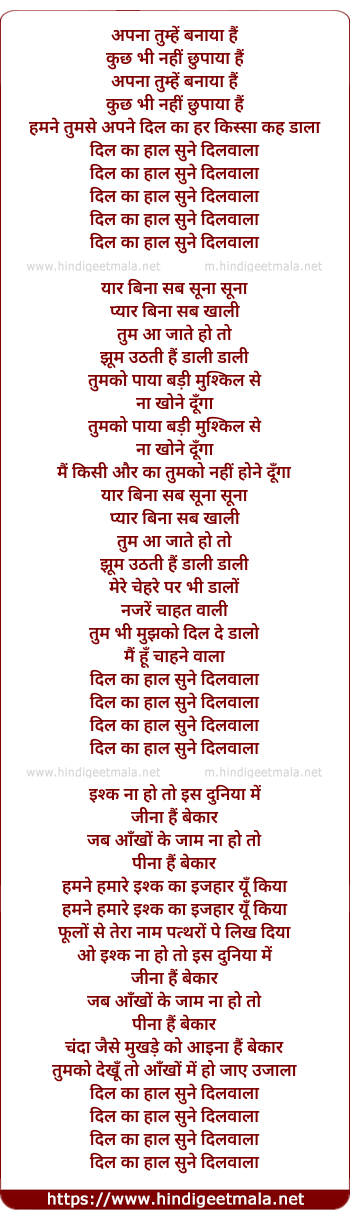 Lyrics of Dil Ka Haal - अपना तुम्हें बनाया हैं