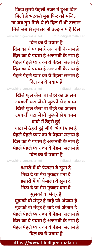 Lyrics of Dil Ka Ye Payam Hai - दिल का ये पयाम है