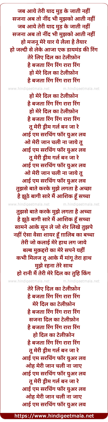 Lyrics of Dil Kaa Telephone Remix - दिल का टेलीफ़ोन