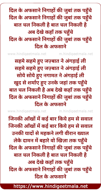 Lyrics of Dil Ke Afasaane Nigaahon Ki Zubaan Tak Pahunche - दिल के अफसाने निगाहों की जुबां तक पहुँचे