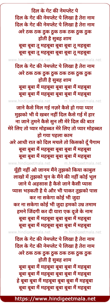 buba buba main mehbuba buba buba main mehbuba