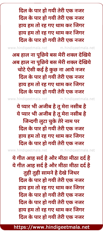 Lyrics of Dil Ke Paar Ho Gayi Ek Nazar - दिल के पार हो गयी एक नजर