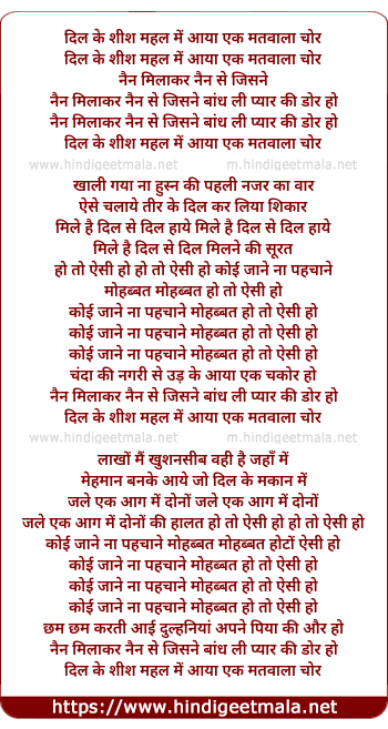 Lyrics of Dil Ke Sheesh Mahal Me - दिल के शीश महल में