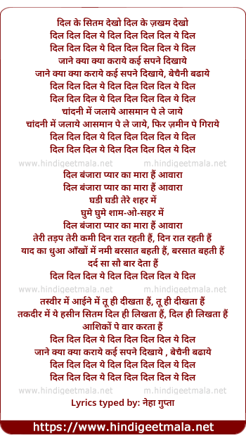 Lyrics of Dil Ke Sitam Dekho Dil Ke Zakham Dekho - दिल के सितम देखो दिल के जख्म देखो