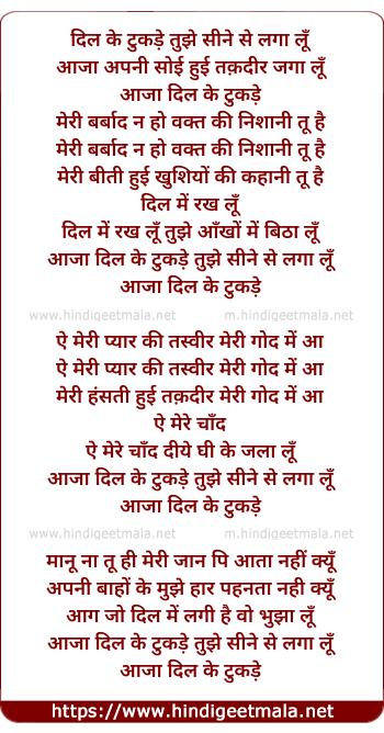 aaja dil ke tukade tujhe sine se laga lu