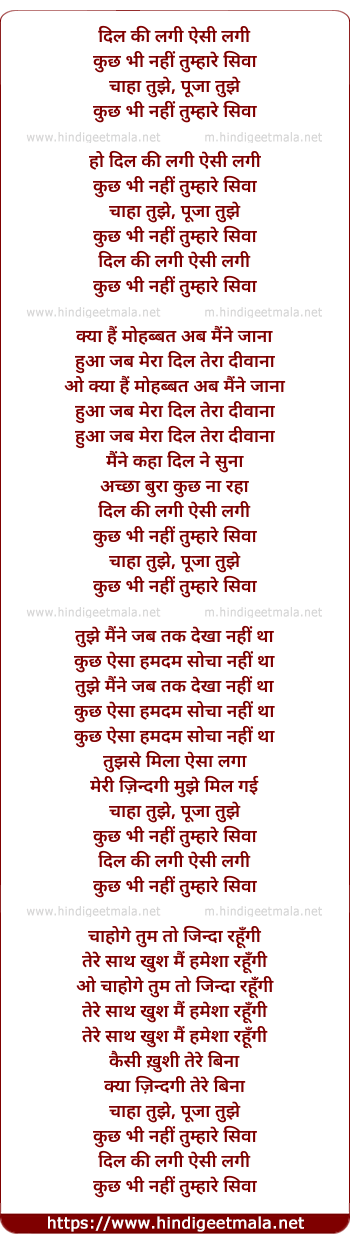 Lyrics of Dil Kee Lagi - दिल की लगी ऐसी लगी