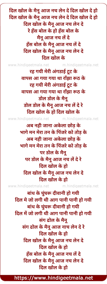 Lyrics of Dil Khol Ke Mainu Aaj Nach Len De - दिल खोल के मैनू आज नच लेन दे