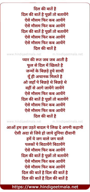 Lyrics of Dil Ki Baate Hai Poocho To Batayenge - दिल की बातें है पूछों तो बतायेंगे