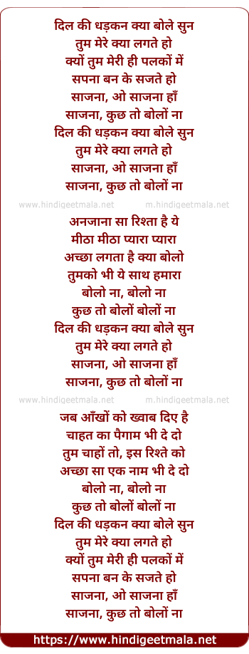 Lyrics of Dil Ki Dhadkan - दिल की धड़कन