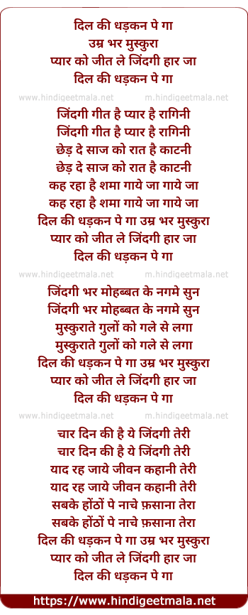 Lyrics of Dil Ki Dhadkan Pe Ga (Sad) - दिल की धड़कन पे गा