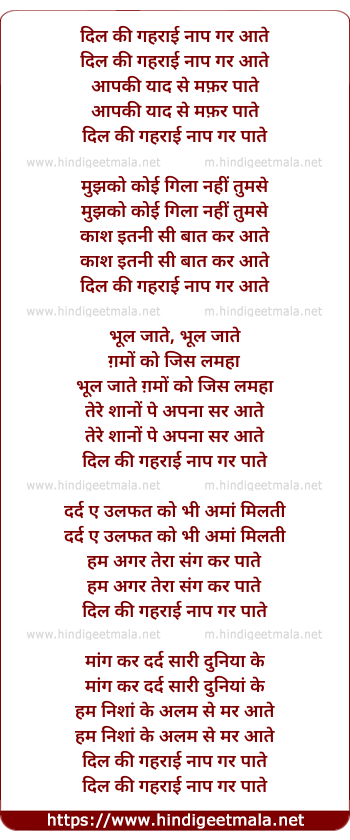 Poetic Translation - Lyrics of Dil Ki Gehrai Naap Gar - दिल की गहराई नाप गर आते