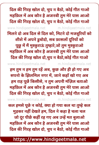 Lyrics of Dil Ki Girah Khol Do, Chup Na Baitho - दिल की गिरह खोल दो, चुप न बैठो