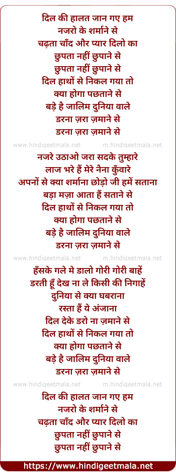Lyrics of Dil Ki Halat Jaan Gaye Hum - दिल की हालत जान गए हम