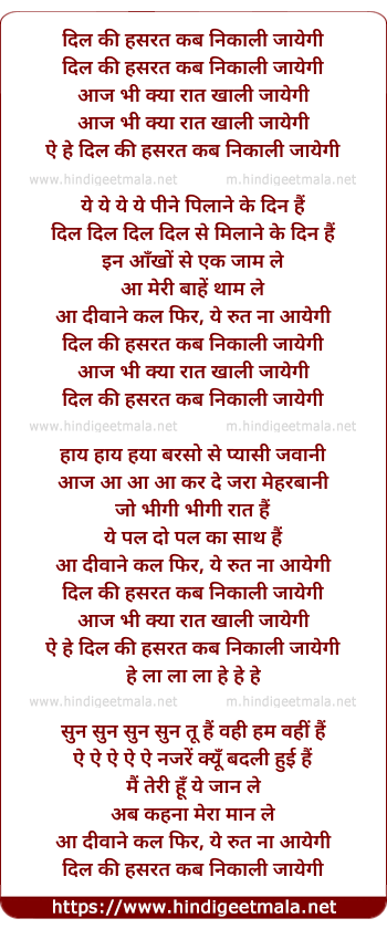 Lyrics of Dil Ki Hasrat Kab Nikal Jayegi - दिल की हसरत कब निकाली जायेगी