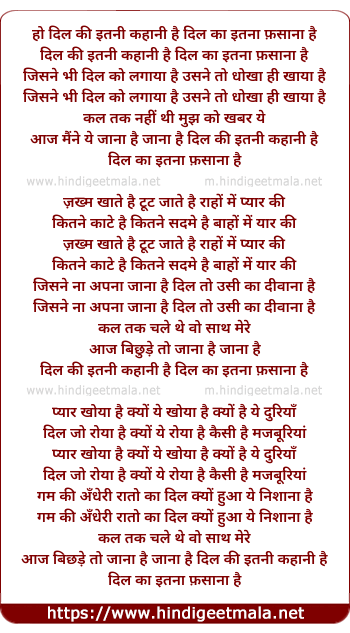 Lyrics of Dil Ki Itni Kahani Hai - दिल की इतनी कहानी है