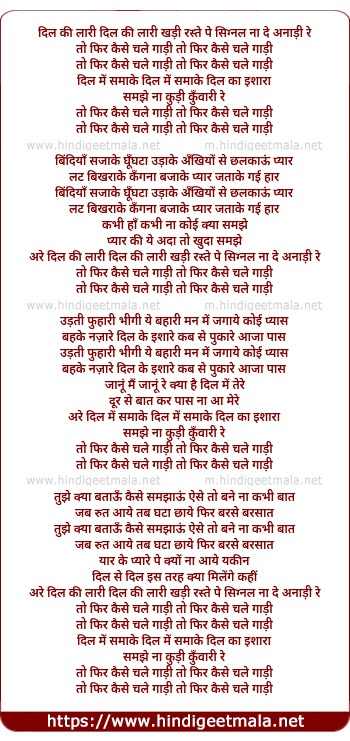 dil ki lari dil ki lari khadi raste pe signal na de anadi re