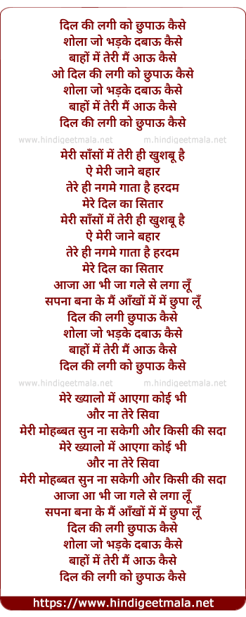 Lyrics of Dil Ki Lagi Ko Chhupau Kaise - दिल की लगी को छुपाऊ कैसे
