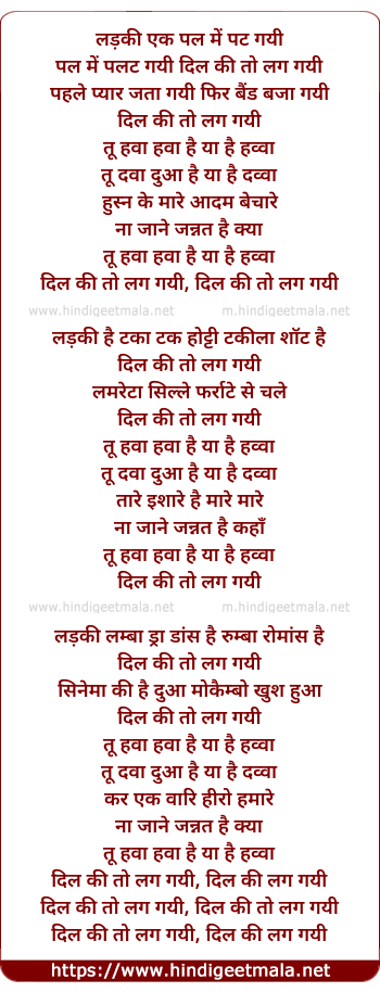 Lyrics of Dil Ki To Lag Gayi - दिल की तो लग गयी
