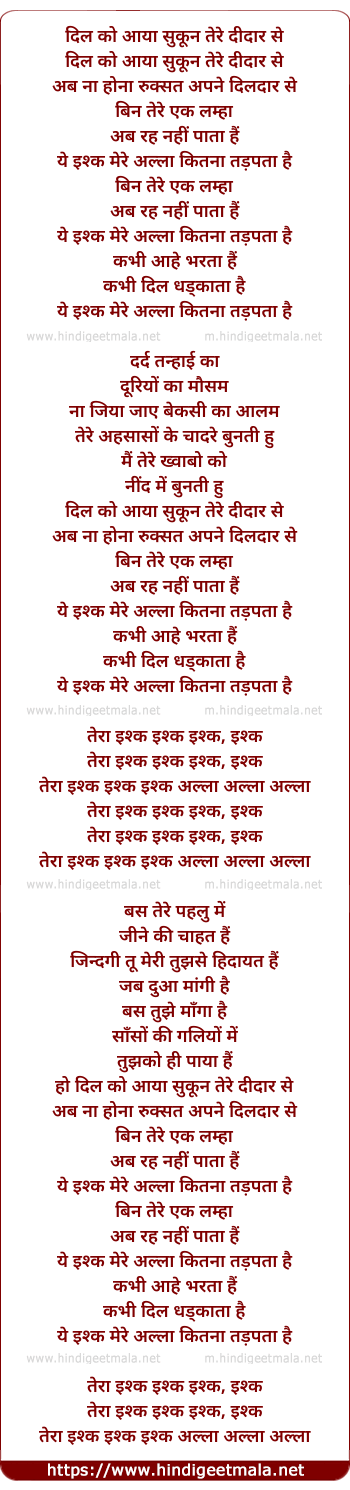 Lyrics of Dil Ko Aaya Sukun Tere Deedaar Se - दिल को आया सुकून तेरे दीदार से