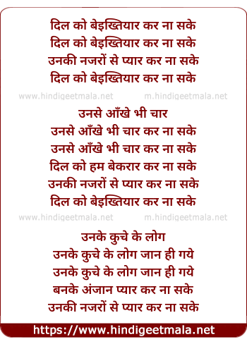 Lyrics of Dil Ko Be Ikhtiyar Kar Na Sake - दिल को बेइख्तियार कर ना सके