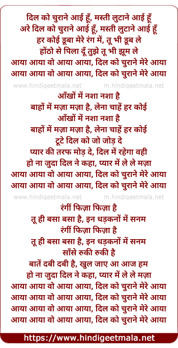 Lyrics of Dil Ko Churane Aayi Hun - दिल को चुराने आई हूँ