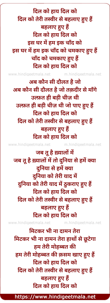 Lyrics of Dil Ko Teri Tasveer Se Bahlaye Hue Hai - दिल को तेरी तस्वीर से बहलाए हुए है
