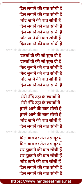 Lyrics of Dil Lagaane Ki Baat - दिल लगाने की बात सोची हैं