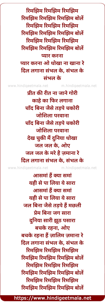 Lyrics of Dil Lagana Sambhal Ke - रिमझिम रिमझिम रिमझिम