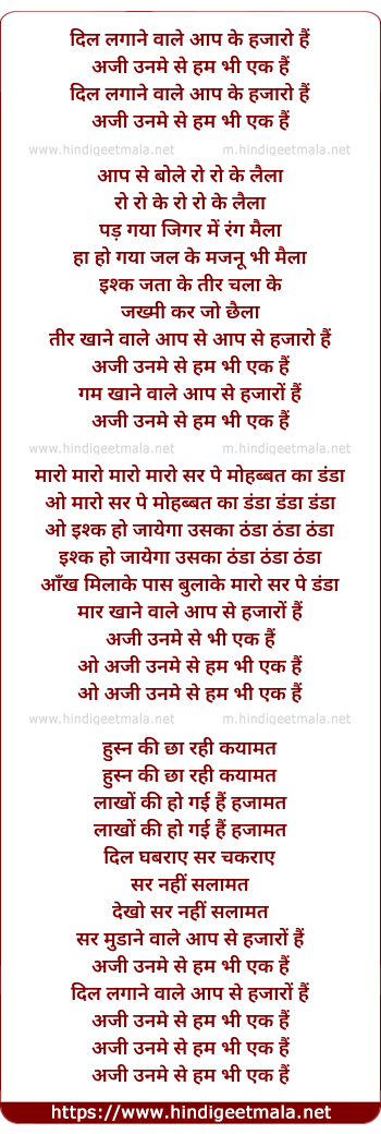 Lyrics of Dil Lagane Wale Aap Se Hazaro Hai - दिल लगाने वाले आप के हजारो हैं