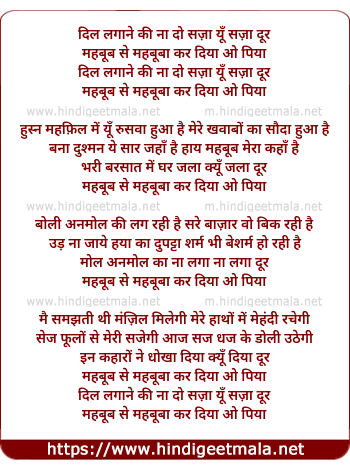 Lyrics of Dil Lagani Ki Na Do Saza - दिल लगाने की ना दो सज़ा